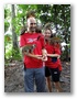 Následující zastávka byl ostrov Mikos. Já jsem tušil, že tam má být něco s opičkami, ale realita nás i tak dostala. Odvedli nás kousek do pralesa a tam na nás najednou začaly ze všech stran skákat tak 20cm velké opičky. A spousta (prý jich v téhle skupině je přes 80). Chlapík navíc po chvilce vytáhl banán a to už bylo jako útok piraň. Já na tom byl ještě v pohodě, ale Verča s dlouhýma vlasama docela trpěla :)