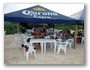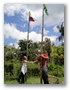 Další přesun a zastávka v domorodé vesnici Macedonia. Tady jsem si přišel už úplně jako turista. Posadili nás na špalíčky a následně naběhlo pár babiček a za bušení do bubínku a ječení čehosi zmateně pobíhaly kolem. Aby to vylepšily, tak po chvilce popadly za ruce i nás a ve dvojicích nás donutily se ke křepčení přidat - prostě něco co ještě žádný běloch neviděl :) Samozřejmě na konci obešly s kyblíčkem na bakšiš a pak jsme absolvovali kolečko po jejich tradičních výrobcích k zakoupení. Jenom pro pořádek uvádím, že ve vesnici žije prý kolem 800 lidí z různých kmenů, mají elektriku i veřejné osvětlení a mobily nízko u pasu...