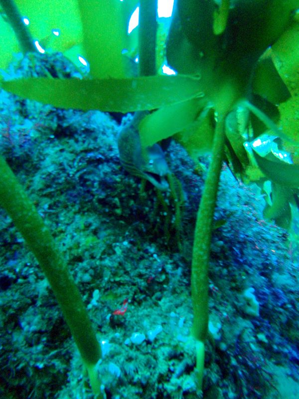 Muréna se schovává v mořské trávě