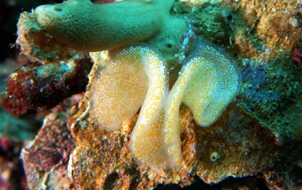 Malinký nudibranch s vajíčky