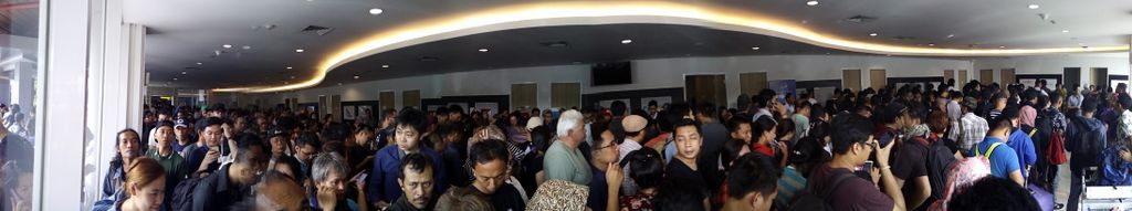 Takhle vypadala fronta lidí na přebookování letenek po zavření letiště...
