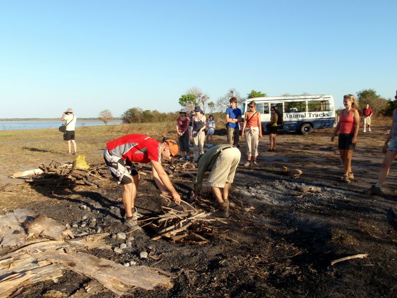 Já názorně ukazuji bushmanovi jak připravit oheň :)