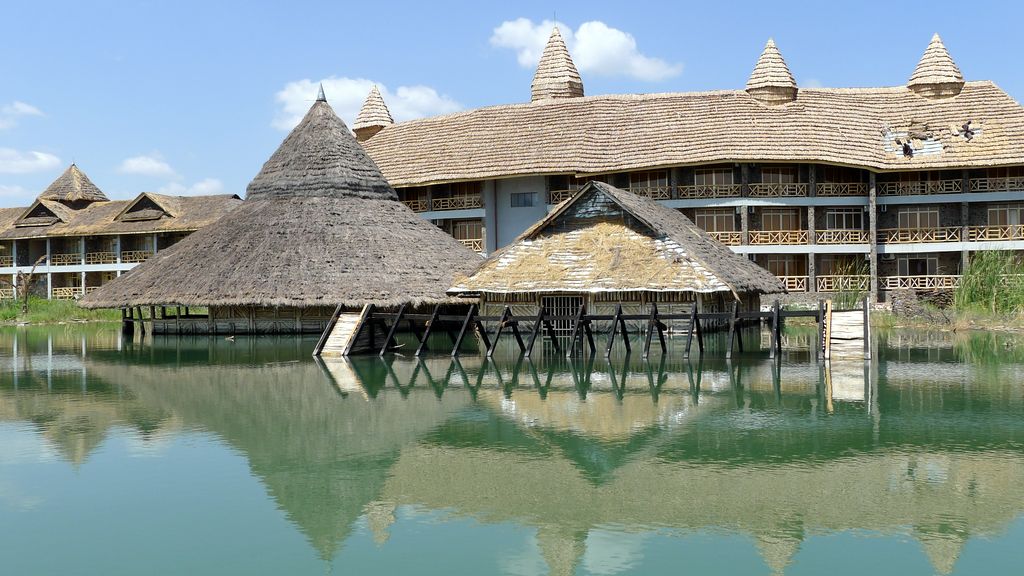 Hladina jezera stoupá a hotel už je z půlky zatopený