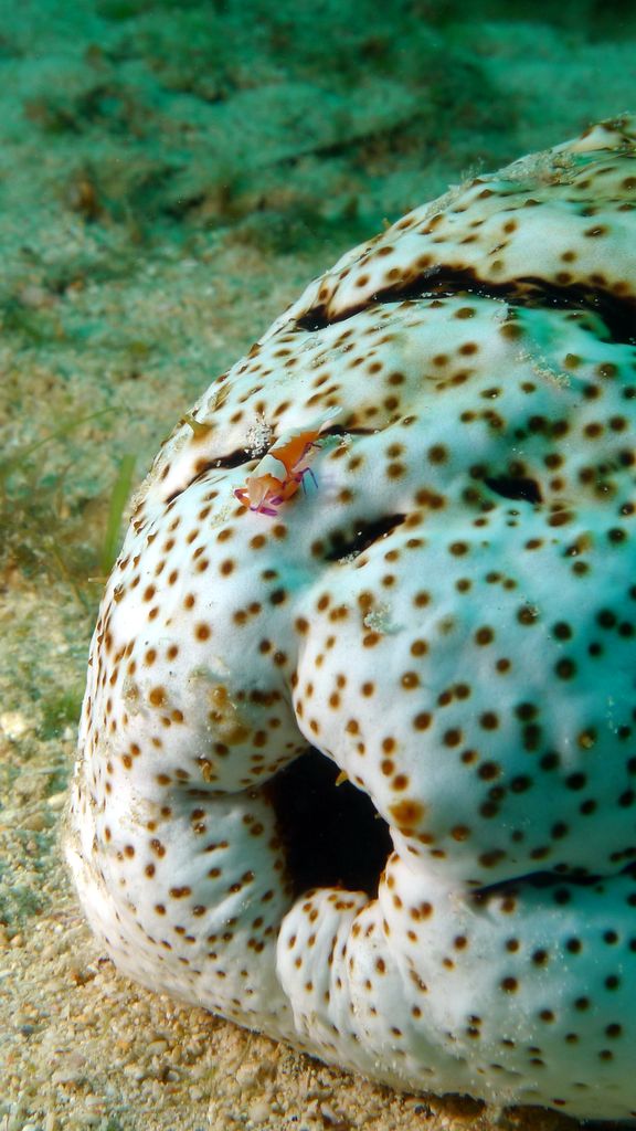 Emperor shrimp on sea cucumber