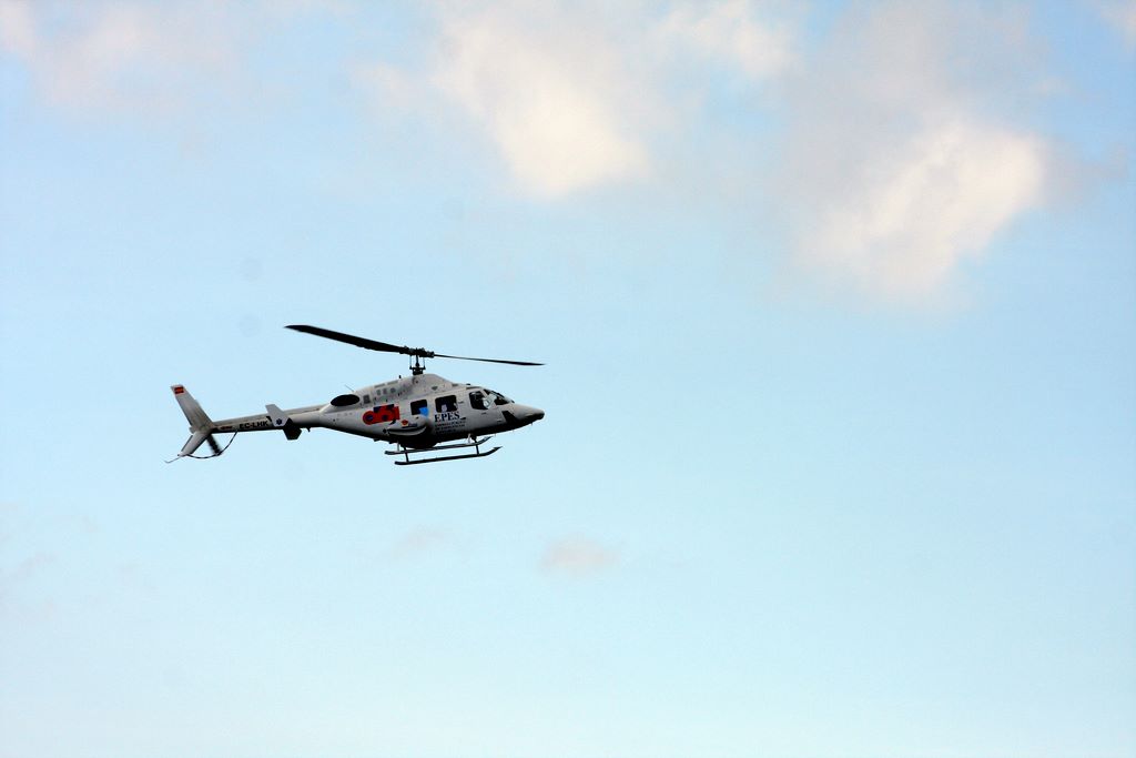 vrtulník na cestě pro zraněného rogalistu